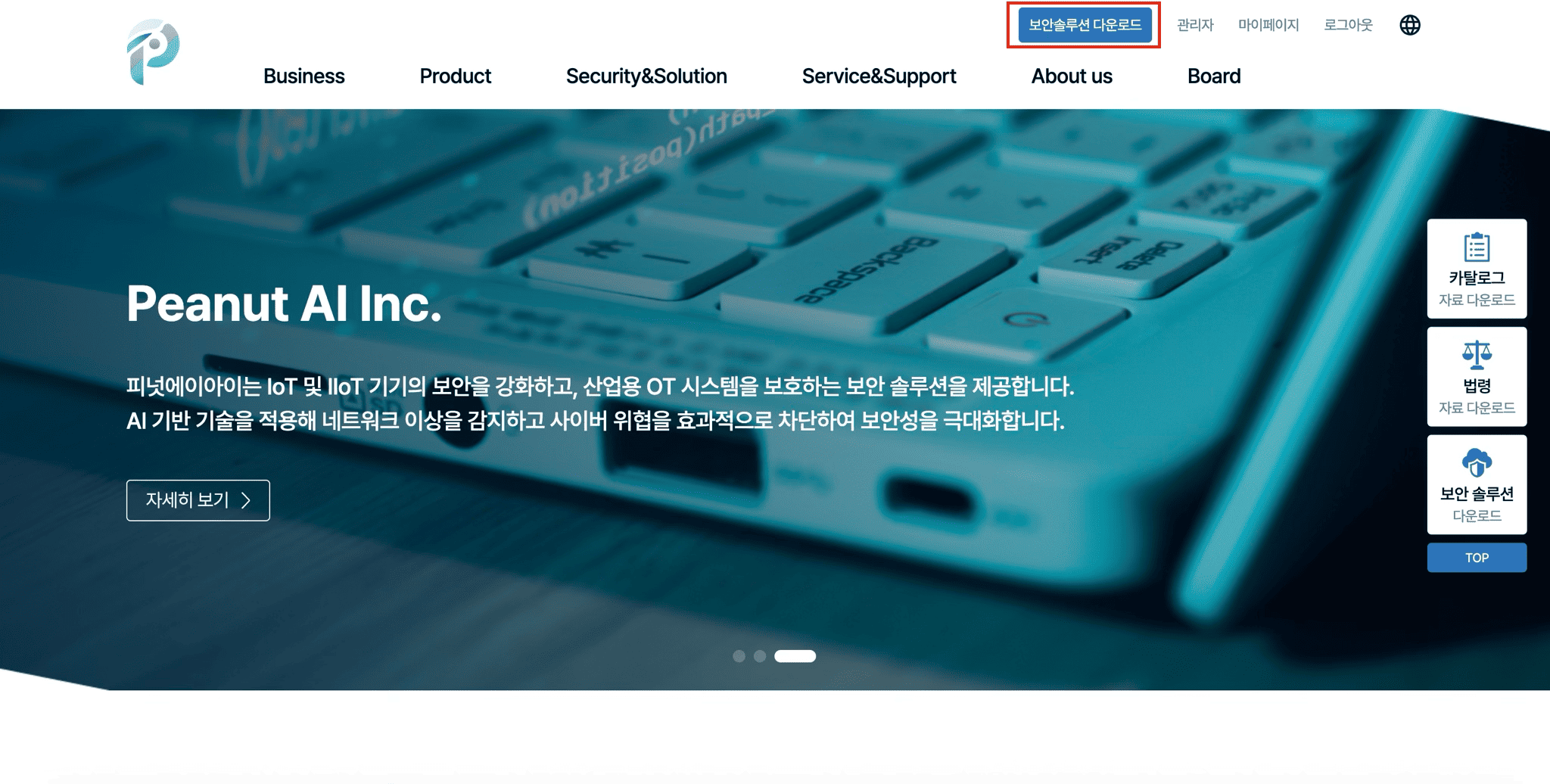 보안솔루션 다운로드 페이지 클릭